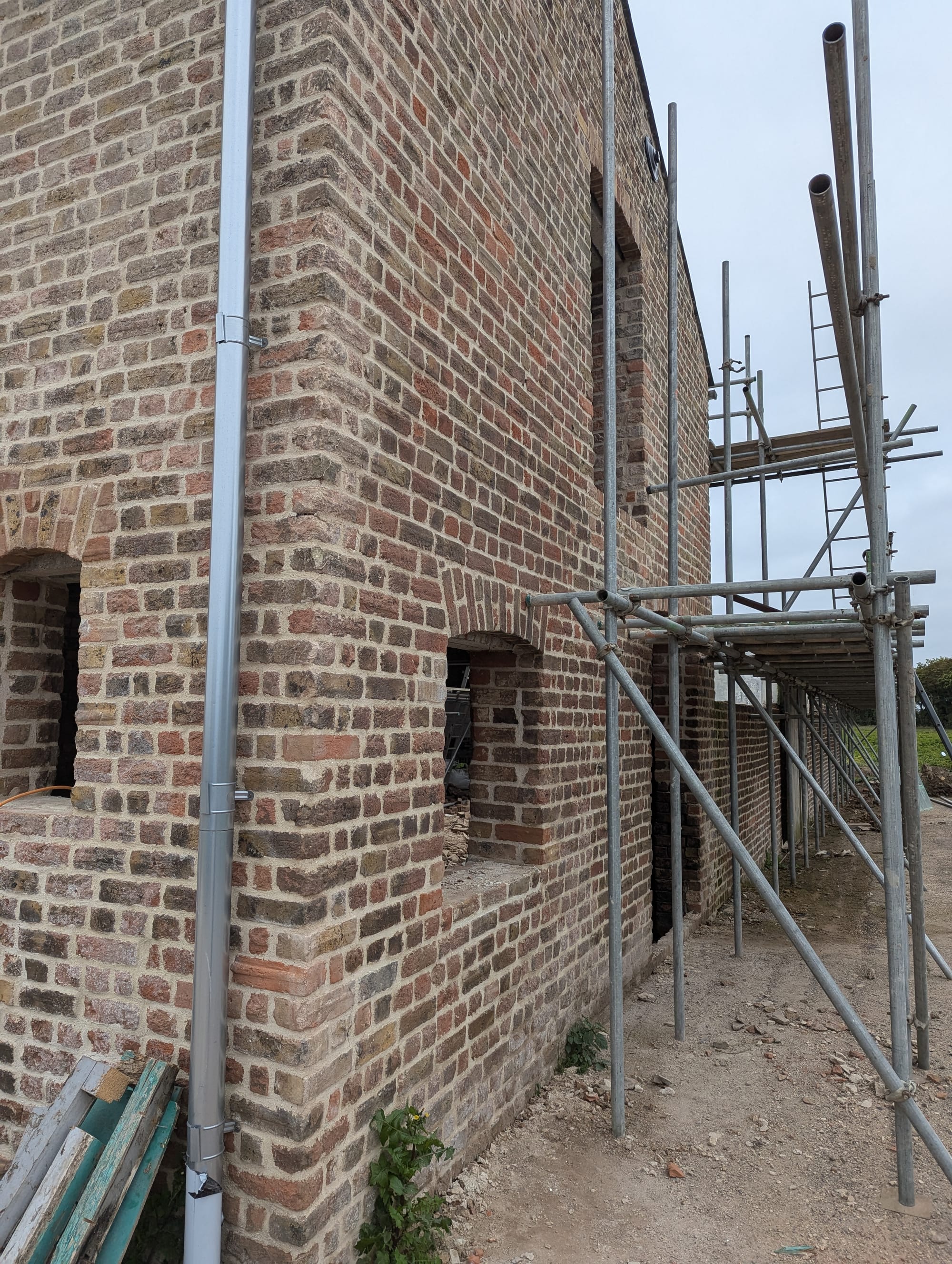The 2 patches of brickwork on the left have been laid in dry sand for easy removal so a steel staircase can be fitted at a later date.